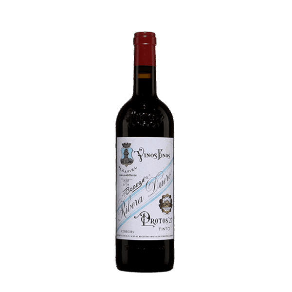 Tanto el nombre como la etiqueta de este vino rinden homenaje a la primera añada que se comercializó de Protos en 1927. Protos 27 es el homenaje a los 11 visionarios que fundaron Protos. Un vino en el que se plasman 10 años de trabajo e investigación en la mejora de las técnicas de cultivo, caracterización de viñedos y de barricas y uso de levaduras autóctonas seleccionadas. Nos encontramos ante un Ribera del Duero de corte clásico, con cierta complejidad aromática y un paso por boca persistente y equilibrado.